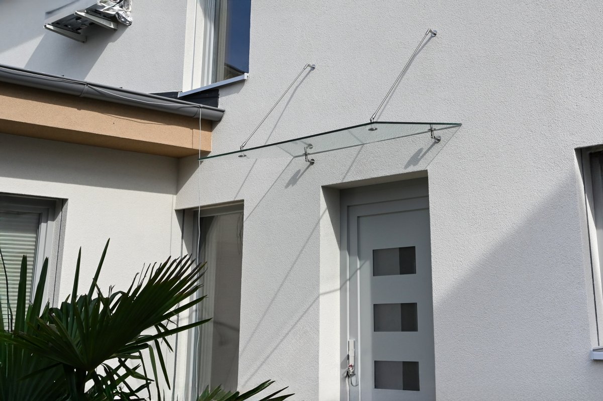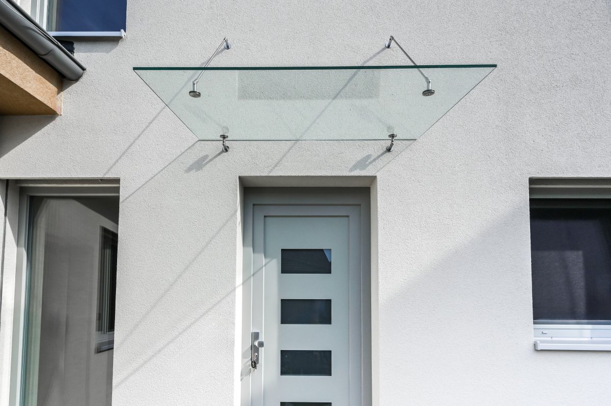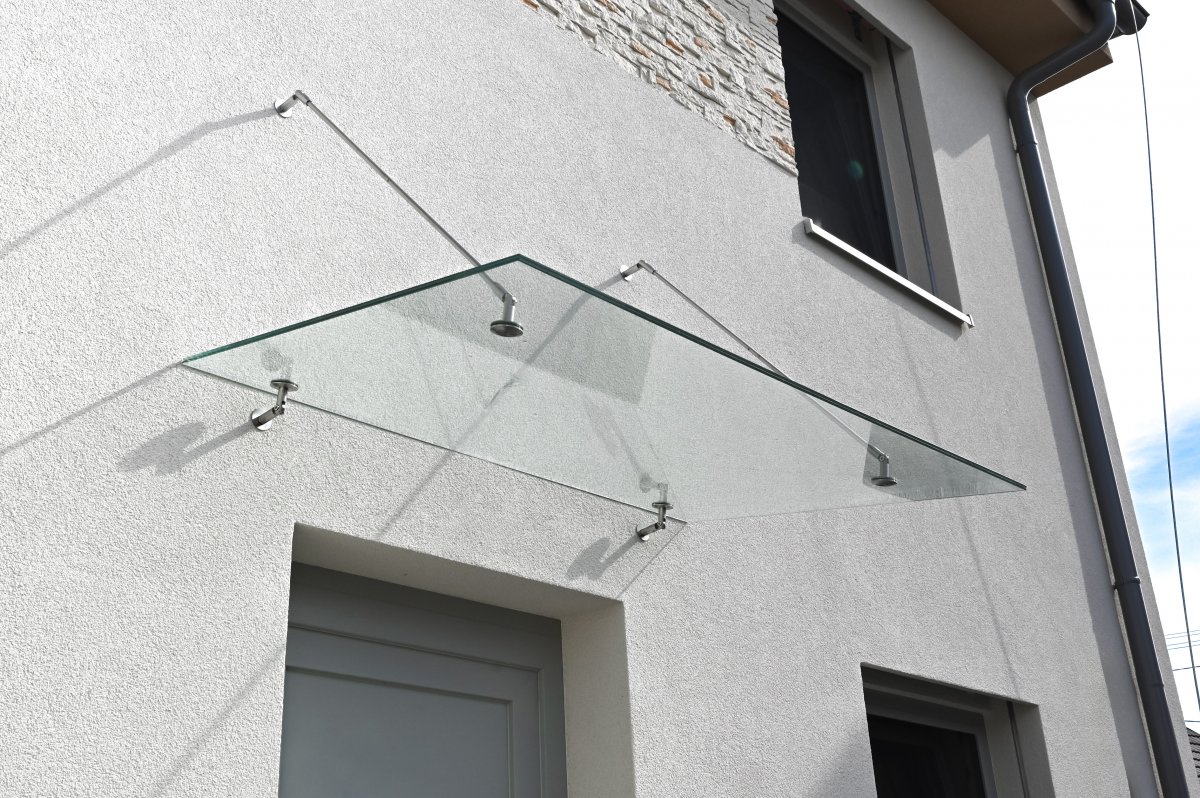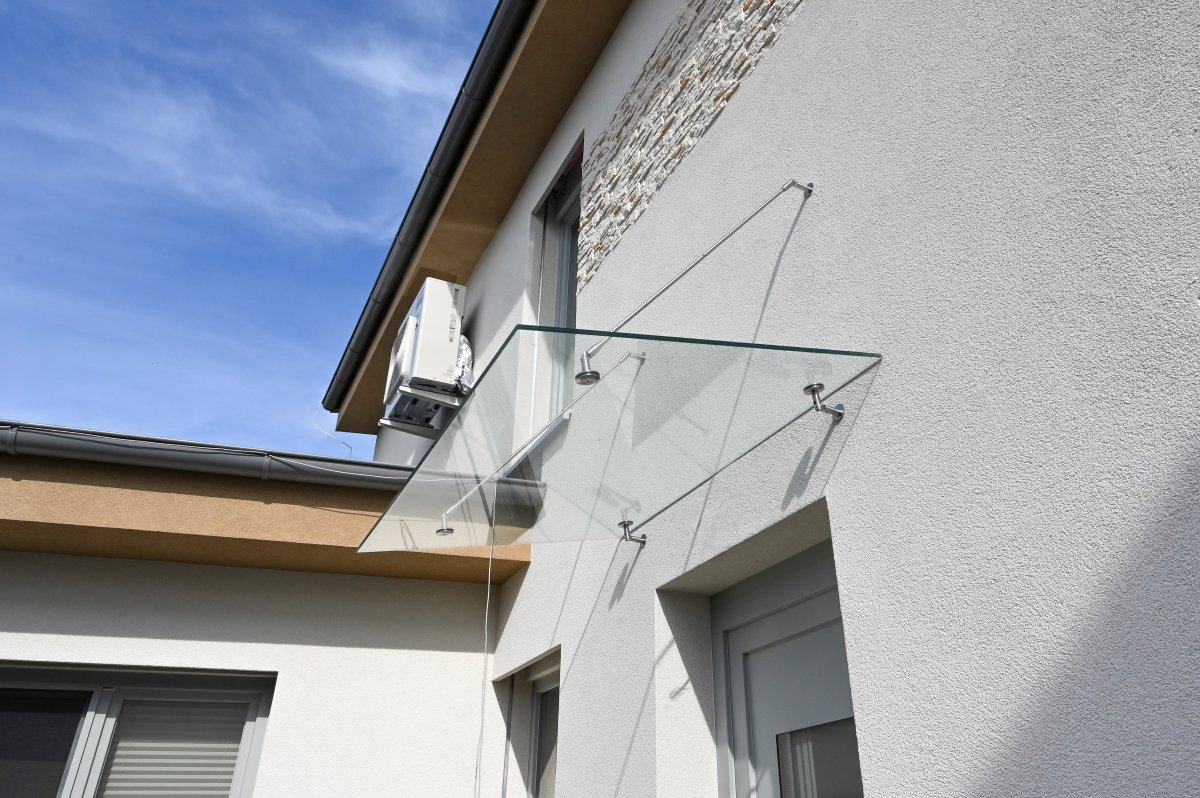 Nad vchodem do rodinného domu jsme namontovali elegantní čirou skleněnou stříšku. Kombinace masivního bezpečnostního skla a nerezového kotvení působí čistě, moderně a dokonale ladí s fasádou domu. Stříška chrání vstupní prostor před deštěm