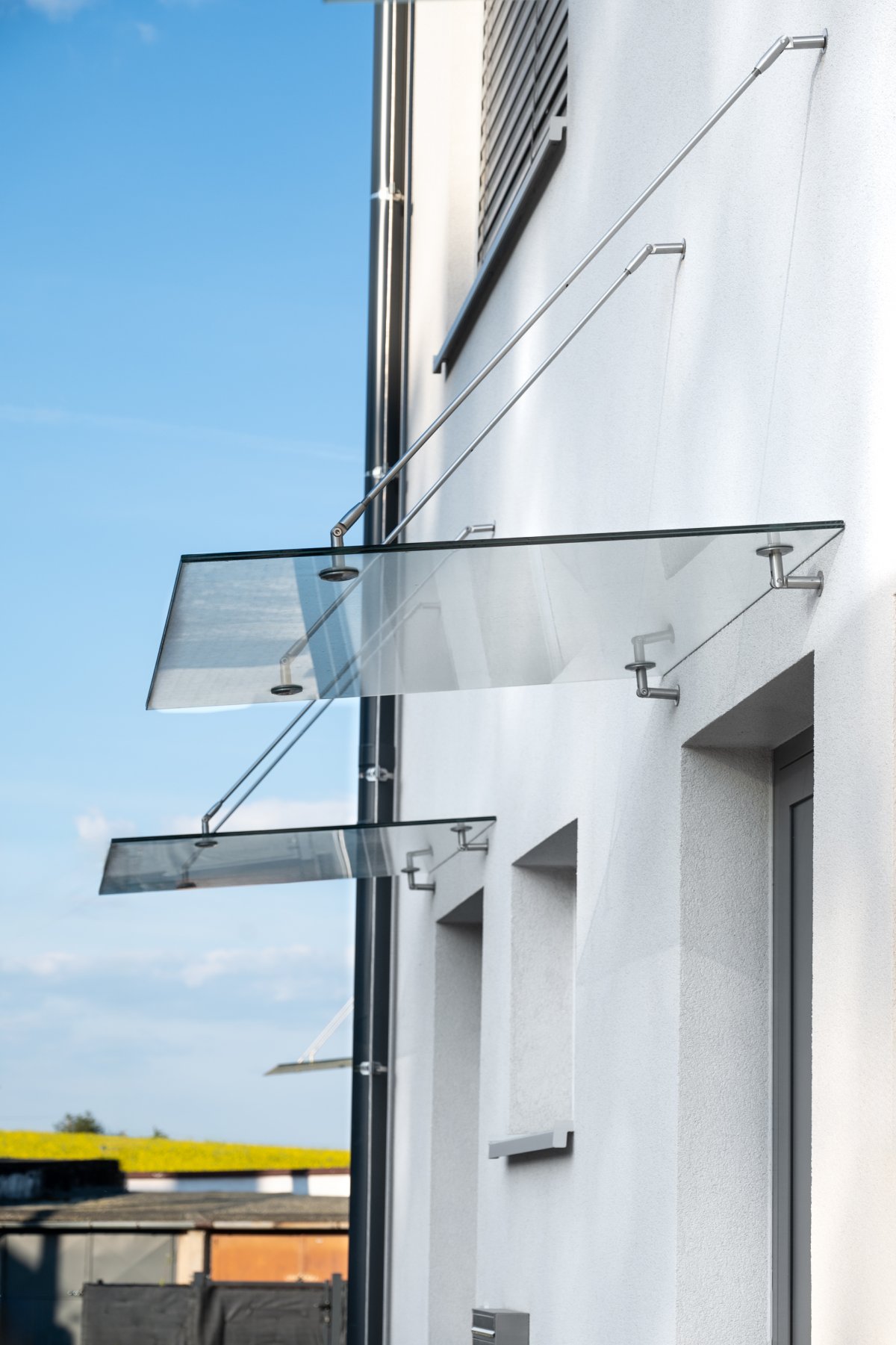 Moderní a elegantní přístřešky nad vstupy byly navrženy a osazeny s důrazem na čistý design a funkčnost. Použité sklo v kombinaci s nerezovými komponenty zajišťuje ochranu před deštěm a zároveň působí vzdušně a esteticky.